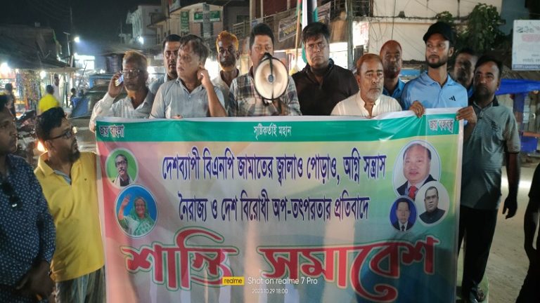 রবিবার (২৯ অক্টোবর) রাতে উপজেলা আওয়ামী লীগের দলীয় কার্যালয় থেকে এ বিক্ষোভ মিছিলটি শুরু হয়ে চৌমুহনী শাপলা চত্বরে গিয়ে প্রতিবাদ সমাবেশ অনুষ্ঠিত হয় ।