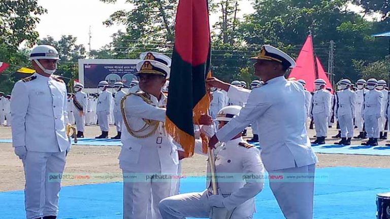 অনুষ্ঠানে রাষ্ট্রপতির পক্ষে নৌবাহিনী প্রধান এডমিরাল এম শাহীন ইকবাল, এনবিপি, এনইউপি, এনডিসি, এএফডবি-উসি, পিএসসি, বানৌজা শহীদ মোয়াজ্জম ঘাঁটির অধিনায়ক কমডোর এম মনির উদ্দিন মল্লিক এর নিকট ন্যাশনাল স্ট্যান্ডার্ড তুলে দেন।