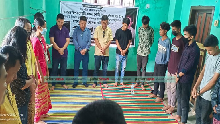 বান্দরবানে আঞ্চলিক দল ইউনাইটেড পিপলস ডেমোক্রেটিক ফ্রন্ট (গণতান্ত্রিক) দলের বীর শহীদ মহান আত্মত্যাগী নেতা কমরেড তপন জ্যোতি চাকমা (বর্মা)-র ৪র্থ মৃত্যু বার্ষিকী উপলক্ষে স্মরণ সভা আয়োজন করা হয়েছে।