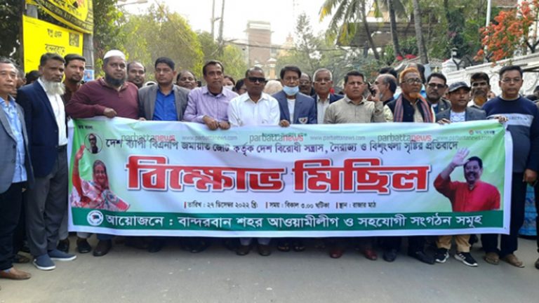 বান্দরবান পৌর আওয়ামী লীগের বিক্ষোভ মিছিল