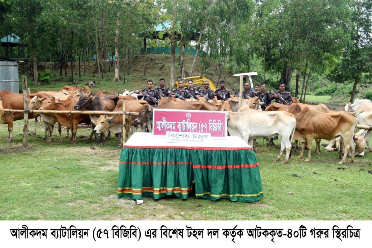বিজিবি জানায়, মিয়ানমারের হতে আলীকদমের সীমান্ত পথে ট্রাক দিয়ে অবৈধভাবে গরু আনা হচ্ছে। গোপন সংবাদে বিষয়টি জানতে পেরে আলীকদম ব্যাটালিয়ন ( ৫৭ বিজিবি) এর অধিনায়ক মঙ্গলবার (২৩ মে) রাত এগারোটায় দ্রুত আলীকদমের দক্ষিণে ৭ কি:মি: দূরে একটি চেকপোস্ট স্থাপন করেন। গরু চোরাকারবারীরা বিষয়টি জানতে পেরে ট্রাক থেকে গরু নামিয়ে বিকল্প রাস্তায় গভীর জঙ্গল দিয়ে গরু গুলো নিয়ে যেতে চাইলে অধিনায়কের নেতৃত্বে বিজিবির টহল দল জঙ্গলের ভেতর থেকে রাত ২টার সময় ৪০টি গরু আটক করে।
