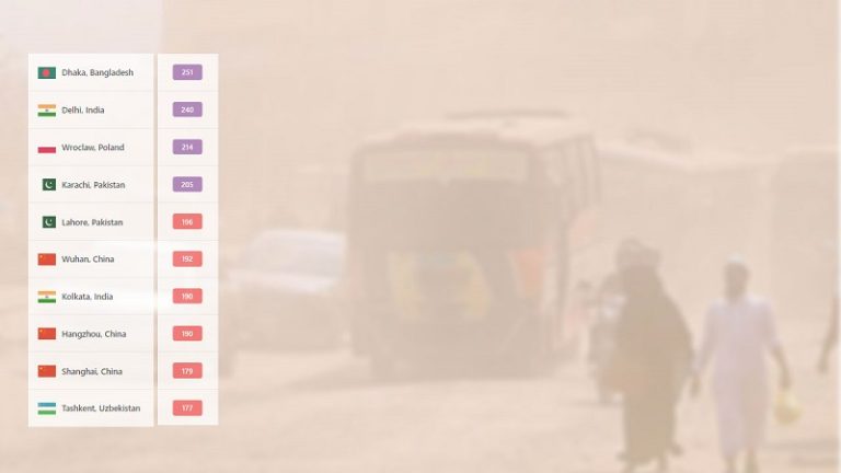 বিশ্বের দূষিত শহরের তালিকায় আজ বৃহস্পতিবার ঢাকা শীর্ষে উঠে এসেছে। বেলা সোয়া ১১টায় এয়ার কোয়ালিটি ইনডেক্স (একিউআই) স্কোর ২৫১ নিয়ে রাজধানীর বাতাসের মান ‘খুবই অস্বাস্থ্যকর।’