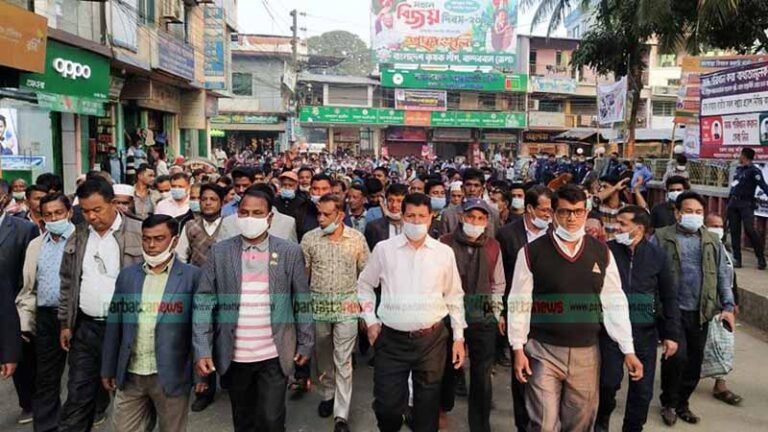 জাতির পিতা বঙ্গবন্ধু শেখ মুজিবুর রহমানের ভাস্কর্য ভাঙার প্রতিবাদে পার্বত্য জেলা বান্দরবানে বিক্ষোভ মিছিল ও প্রতিবাদ সমাবেশ অনুষ্ঠিত হয়েছে। মঙ্গলবার (৮ ডিসেম্বর) অনুষ্ঠিত এই প্রতিবাদ কর্মসূচিতে আওয়ামী লীগ ও অঙ্গ সংগঠনের নেতাকর্মীরা অংশ নেন।