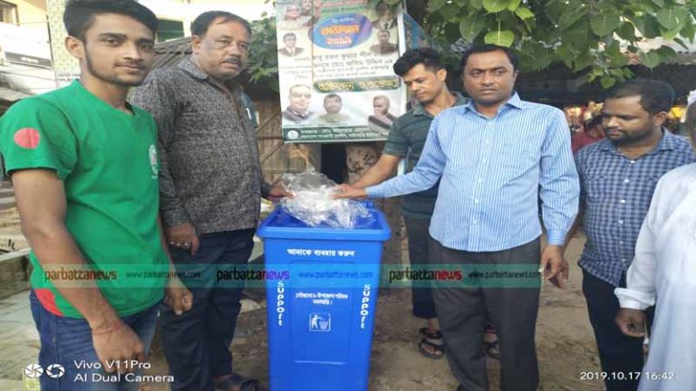 মহালছড়িতে পরিচ্ছন্নতা রক্ষায় উপজেলা পরিষদের ডাস্টবিন বিতরণ