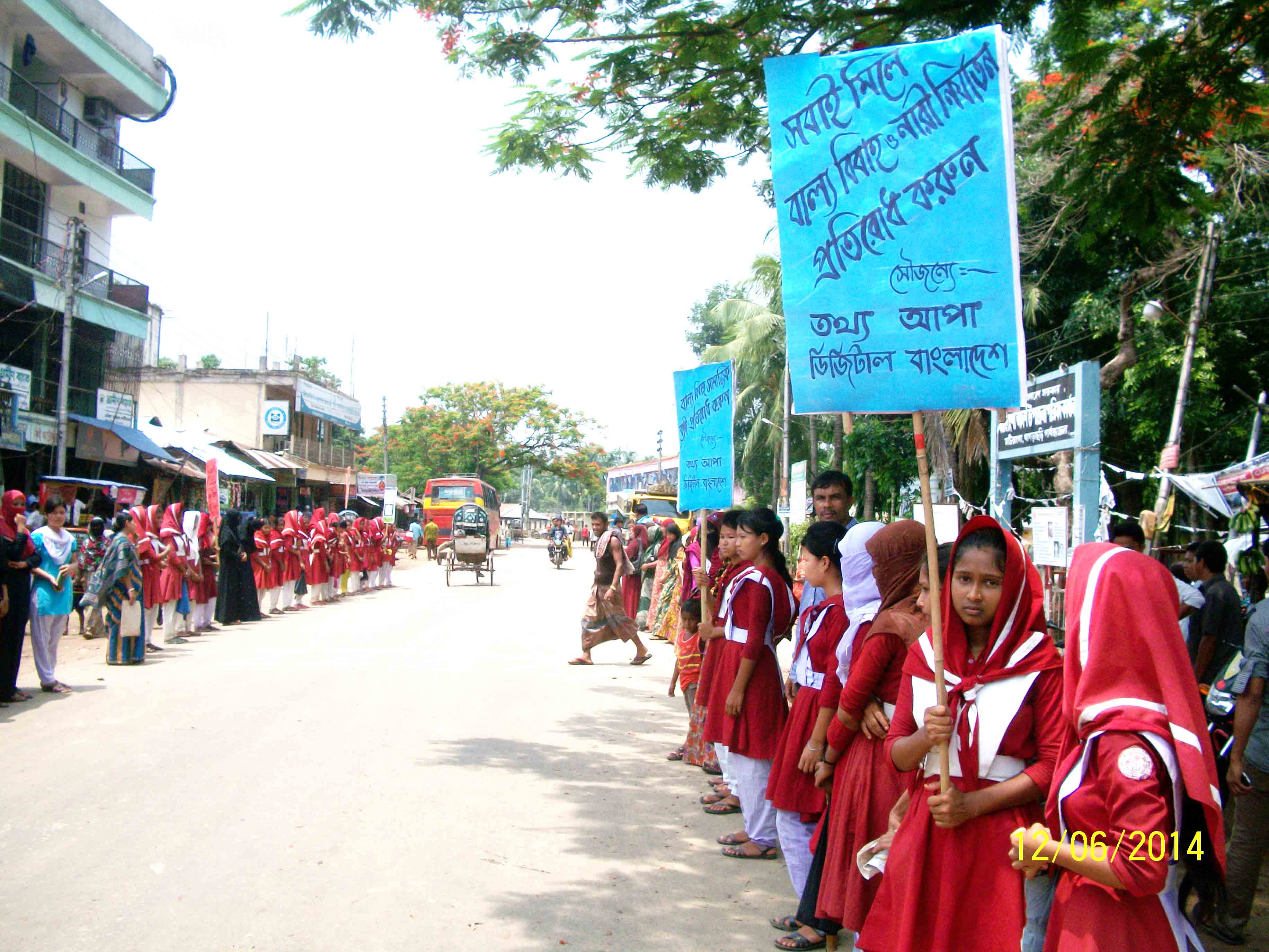 “বালিকা বধূ নয়” এই প্রতিপাদ্যকে ধারণ করে খাগড়াছড়ি’র মাটিরাঙ্গা উপজেলায় বাল্যবিবাহ প্রতিরোধে মানববন্ধন কর্মসূচি পালন করেছে উপজেলা জাতীয় মহিলা সংস্থা। সর্ব সাধারণের মধ্যে সচেতনতা সৃষ্টির লক্ষে বৃহস্পতিবার সকাল ১১টায় উপজেলা পরিষদের সামনে প্রধান সড়কে এ মানববন্ধন কর্মসূচি পালন করা হয়।