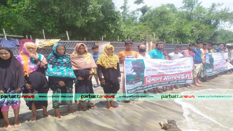 এছাড়াও শত শত ক্ষতিগ্রস্ত পরিবারের লোকজন মানববন্ধনে উপস্থিত ছিলেন।