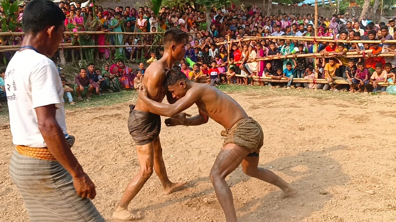 এ সময় বিকেল সাড়ে ৩টায় স্থানীয় ও বিভিন্ন এলাকা থেকে আগত ১২ জন বলীর অংশগ্রহণে অনুষ্ঠিত হয় ঐতিহ্যবাহী বলি খেলা।