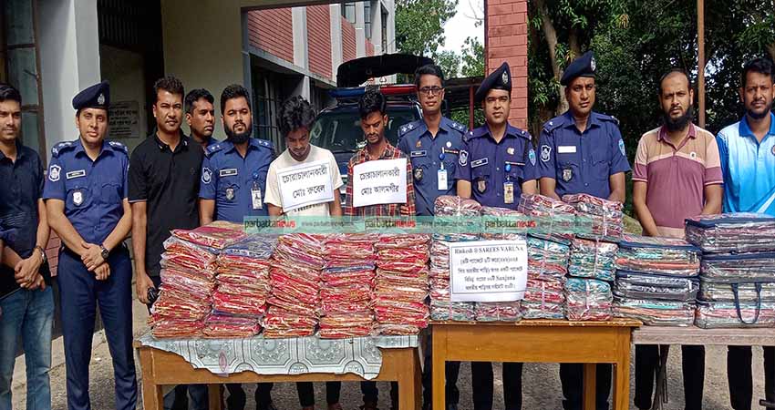 এসময় তাদের কাছ থেকে মোট ২২৮টি ভারতীয় শাড়ি জব্দ করা হয়। যার বর্তমান বাজার মুল্য প্রায় ১৩ লাখ টাকা।