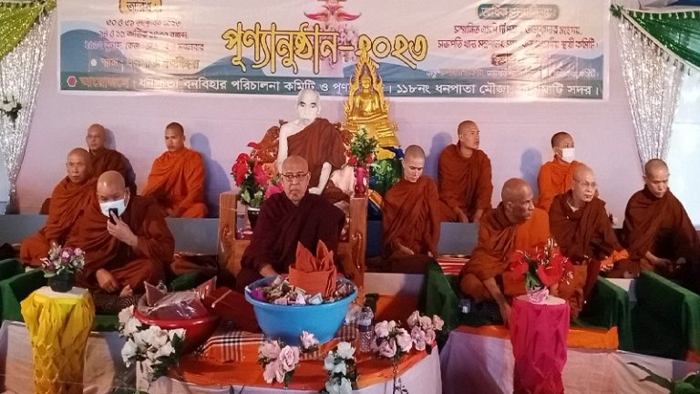 বিকেলে সমবেত পূণ্যার্থীদের উদ্দেশে ধর্মীয় দেশনা দেন, বৌদ্ধধর্মীয় অন্যতম গুরু মেরুল বাড্ডা আন্তর্জাতিক বৌদ্ধ বিহারের অধ্যক্ষ ধর্মমিত্র মহাস্থবির।