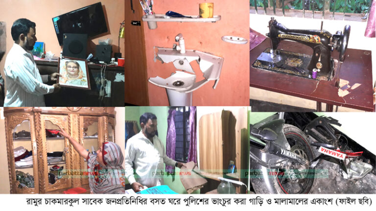 রামুতে বসত বাড়িতে পুলিশের নজিরবিহীন ভাংচুর ও লুটপাটের ঘটনায় রামু থানার ২জন এসআই, ১ জন এএসআই, ২ জন কনস্টেবলসহ ৬ জনকে অভিযুক্ত করে বিজ্ঞ আদালতে মামলা (ফৌজদারি দরখাস্ত) দায়ের হয়েছে। সোমবার (২৪ আগস্ট) রামু উপজেলার পশ্চিম চাকমারকুল এলাকার হাবিবুর রহমানের স্ত্রী সাবেক মহিলা মেম্বার আরেফা বেগম বাদী হয়ে মামলাটি দাখিল করেন।