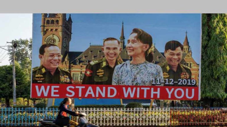 মিয়ানমারে রোহিঙ্গা গণহত্যার অভিযোগে আন্তর্জাতিক বিচারিক আদালতে বিচারের মুখোমুখি অং সান সু চিকে নৈতিক সমর্থন দিতে দেশটির বিভিন্ন প্রান্তে তার সঙ্গে সেনাবাহিনীর নেতাদের ছবিসংবলিত বিলবোর্ড স্থাপন করা হয়েছে।