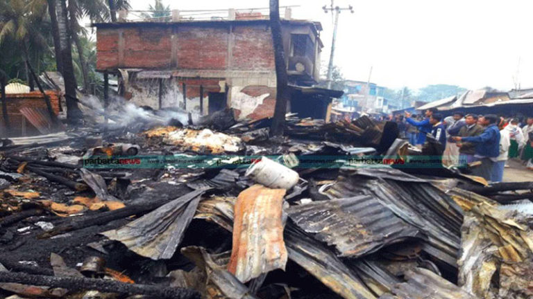 রোয়াংছড়িতে অগ্নিকাণ্ডে ১২ দোকান ও বসতঘর পুড়ে ছাই