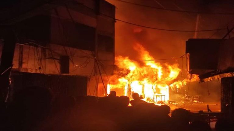 লংগদুতে ভয়াবহ আগুনে পুড়ে ছাই মাইনীমুখ বাজারের দোকানপাট