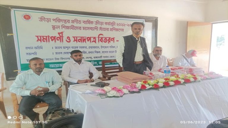 বিদ্যালয়ের ক্রীড়া শিক্ষক ও সাঁতার প্রশিক্ষক উছমান গণি এর পরিচালনায় অনুষ্ঠানে প্রধান অতিথি হিসেবে সনদ ও জার্সি বিতরণ করেন, লংগদু উপজেলা পরিষদের চেয়ারম্যান আব্দুল বারেক সরকার।