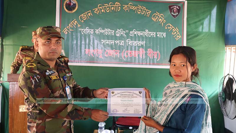 লংগদুতে সেনাবাহিনীর উদ্যোগে প্রশিক্ষণার্থীদের মাঝে কম্পিউটার সনদ বিতরণ