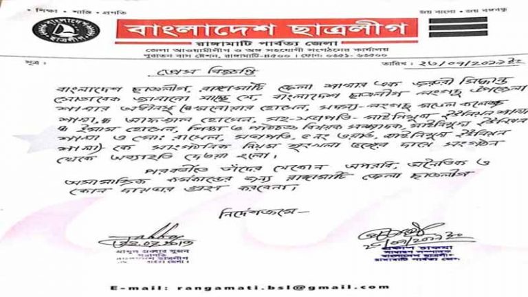 লংগদুতে ৪ ছাত্রলীগ নেতাকে অব্যাহতি