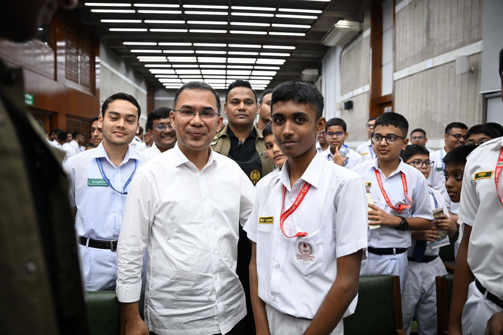 এ সময় তাদের সাথে শুভেচ্ছা বিনিময় করেন প্রধানমন্ত্রী তারেক রহমান । ৬ষ্ঠ থেকে একাদশ শ্রেণী পর্যন্ত বিভিন্ন শ্রেণীর প্রায় দেড় শতাধিক শিক্ষার্থী জাতীয় সংসদ পরিদর্শনে আসেন।