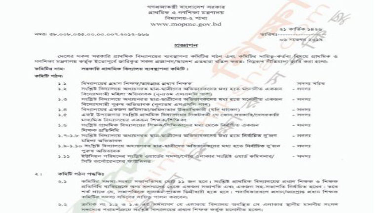 স্নাতক ছাড়া প্রাথমিক বিদ্যালয়ের সভাপতি নয়: প্রজ্ঞাপন জারি