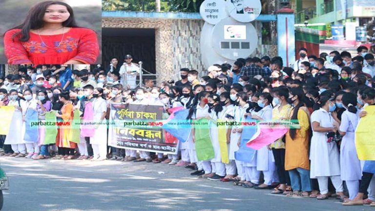 রাঙামাটিতে কলেজ ছাত্রী পূর্ণিমা চাকমার মৃত্যুকে হত্যাকাণ্ড বলে দাবি করে তার হত্যার সুস্থ বিচার ও জড়িতদের চিহ্নিত করে দ্রুত বিচারের আওতায় আনার দাবীতে রাঙামাটিতে মানববন্ধন করেছে পূর্ণিমা চাকমার পরিবারবর্গ ও সহপাঠি শিক্ষার্থীরা।