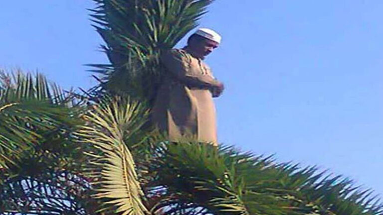৩০ ফুট উঁচু খেজুরগাছে উঠে নামাজ আদায়