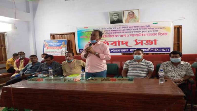 ড.এম এ কাদের কাপ্তাই উপজেলা পরিষদ চেয়ারম্যান ও ইউপি চেয়ারম্যানের বিরুদ্ধে গত তিন দিন পূর্বে বেসরকারি টেলিভিশন যমুনা টিভিতে যে বক্তব্য দিয়েছে তা মিথ্যা দাবি করে প্রতিবাদ সভা হয়েছে।